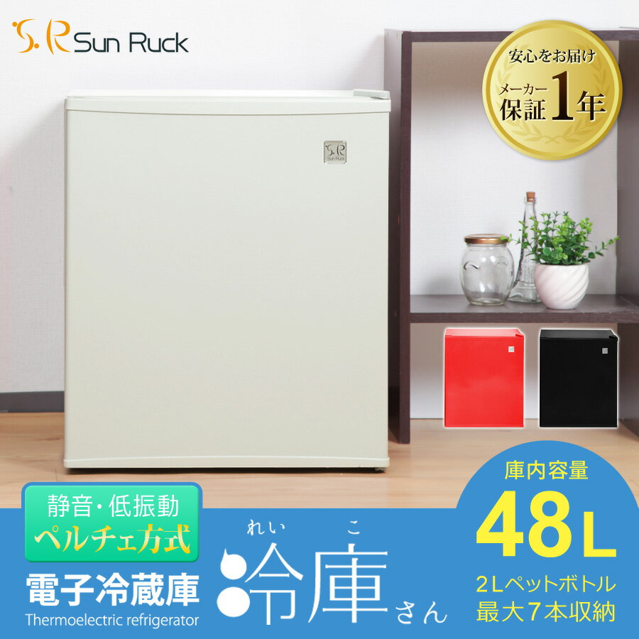 1ドア冷蔵庫 48L ペルチェ方式 一人暮らし ひとり暮らし 冷蔵庫 静音 小型 ワンドア 右開き 小型冷蔵庫 ミニ冷蔵庫 コンパクト おしゃれ 新生活 白 黒 赤 SunRuck 冷庫さん SR-R4802
